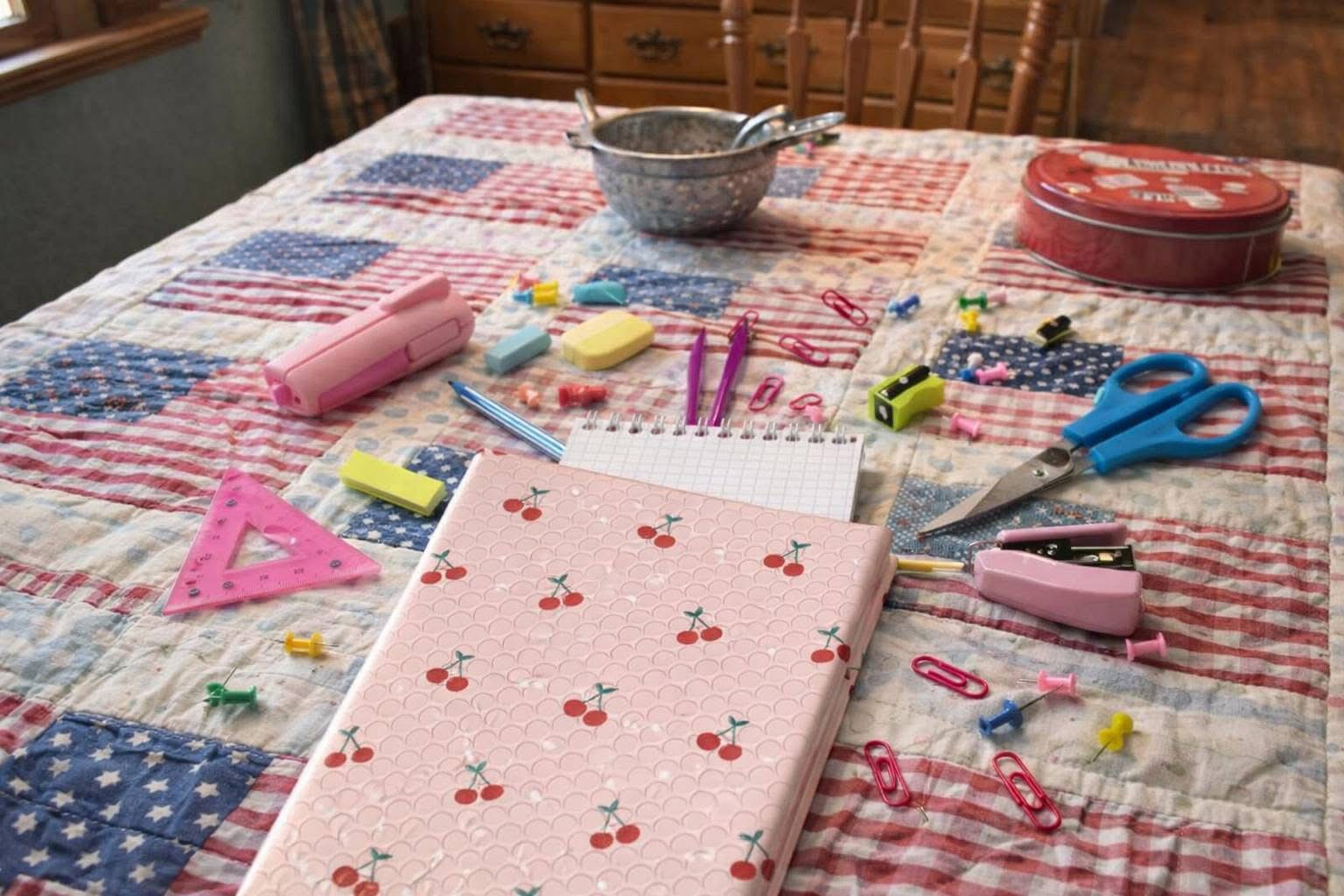 And this is not quite the end of the story. Soon these quilt blocks that are left, I hope, will be wrapped in tissue, accompanied by a poem or a short note, and tucked into cherry-printed mailers that look as though they were made for quilt scraps and family history. Some blocks already know where they belong. Others await investigation on the Internet, on family sites, on Find a Grave, or on many other sources. I designated a pretty butterfly- themed journal to this quest. Other blocks may have to be claimed. I like that thought – that after all these years, the names may still find their way home.