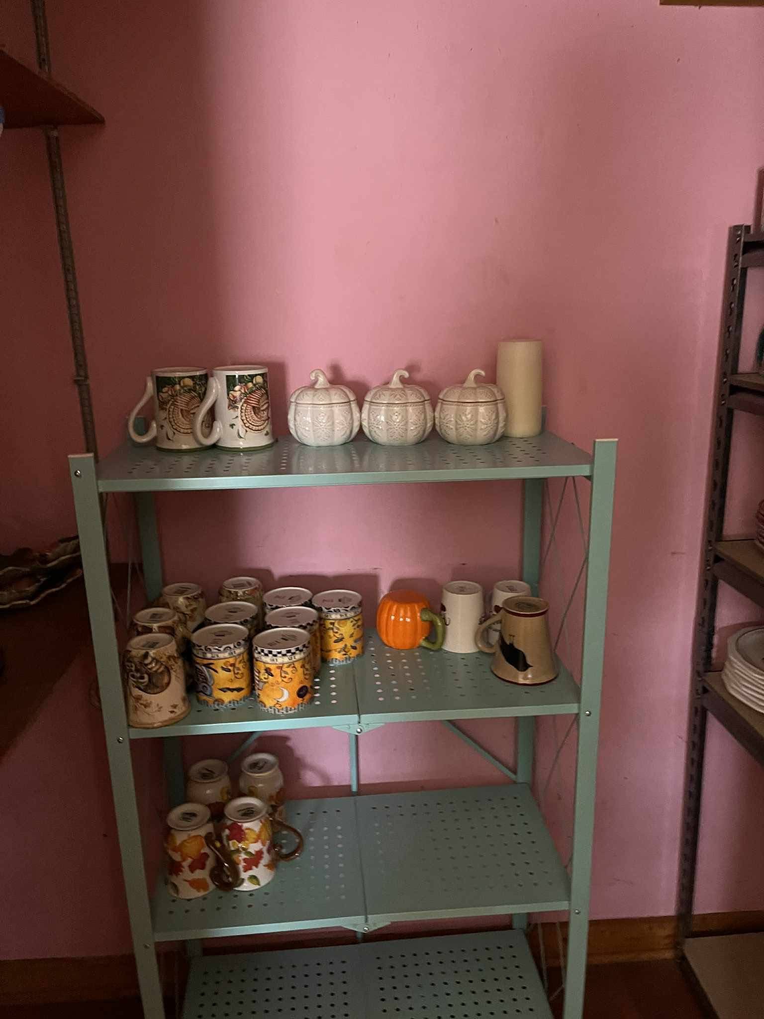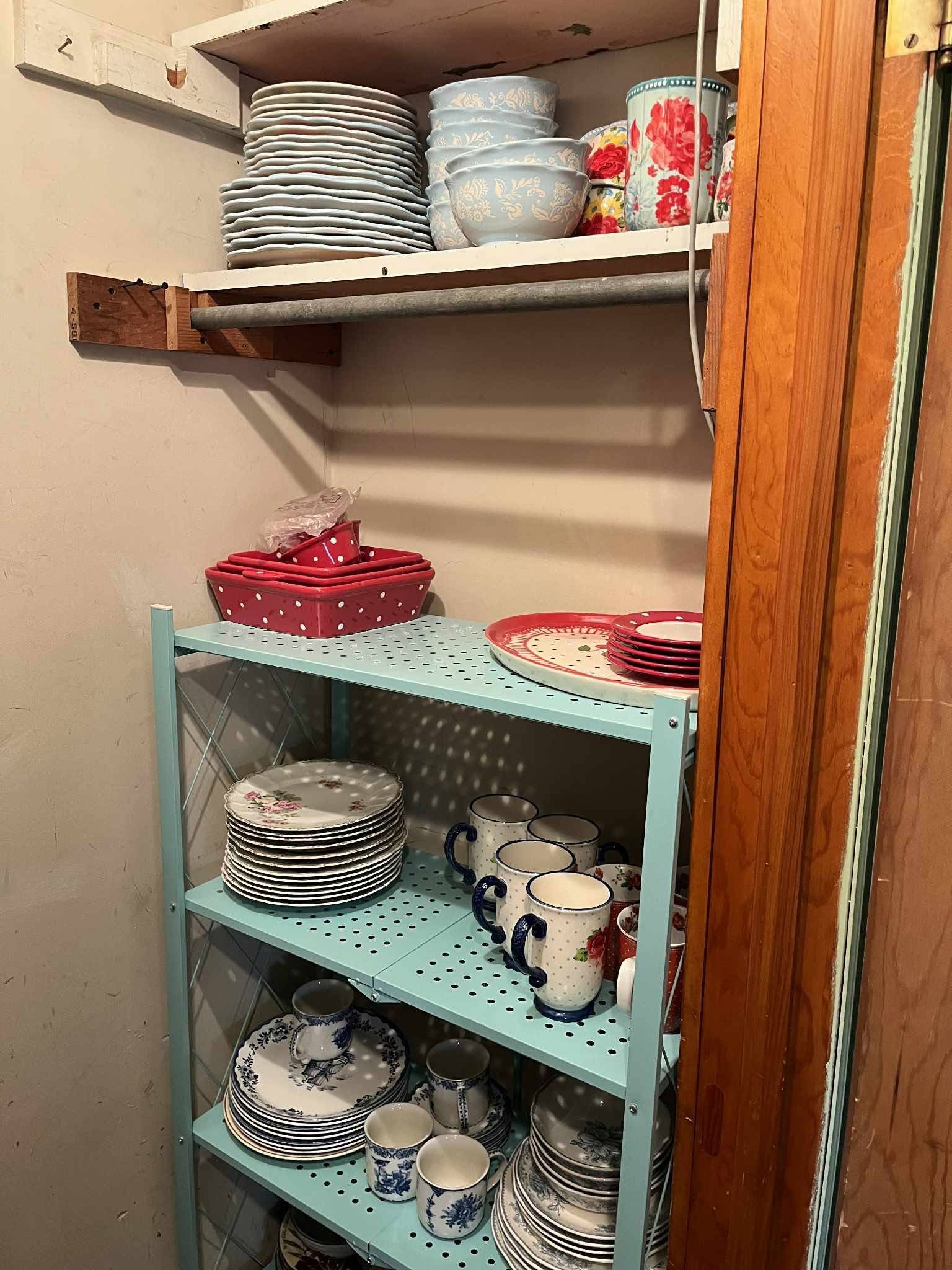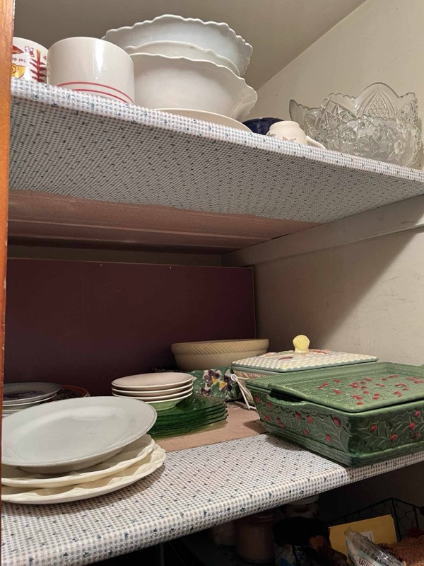 Now I need to say this: I love organization. Always have. In my day, I was an organizing fanatic. My house didn’t always show it, but I could straighten, sort, arrange, and temporarily improve my home with the best of them. Lately, I have not had mobility or spunk to do what needs to be done. And just as importantly, I have not had enough room. Space IS the final frontier, and space has been one of the greatest gifts Brenda and Hayleigh have given me. They have created room to breathe. By carrying things downstairs to be stashed, by moving one category out so another one can move in, by making room for the house to function again, they have made it possible for things to look more as I think they should. The china is a perfect example. There was no earthly way those china closets, cupboards, and shelves were ever going to look pretty and sensible. Easter, Halloween, and Christmas were all trying to live in the same real estate. No wonder it all felt crowded. No wonder the shelves were defeated and sad. Once Brenda and Hayleigh began making magic, giving things a proper home, the China could finally begin to look like China again instead of a traffic jam with gravy boats.